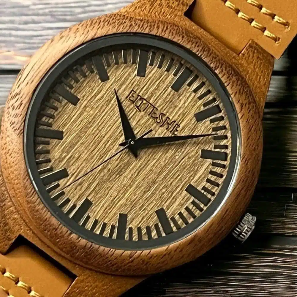 ساعة إيكو الخشبية من إيليتشي والتي تتميز انها مقاومة للماء وتتمع بخفه عالية واناقة مميزة وفريدة مما يجعلها الأفضل دوماً للإستخدام اليومي ويعطيها المكانة العملية والتي تصل لتعدد استخداماتها سواء استخدام يومي أو في المناسبات وتأتي هذه الساعة بحجم قرص ( 45 mm ) وبسماكة (12mm ) وبمحرك كوارتز ياباني الصنع وخامة زجاجية كريستالية هاردلكس والذي يجعلها من أفضل الساعات الخشبية واجودها واكثرها مبيعاً