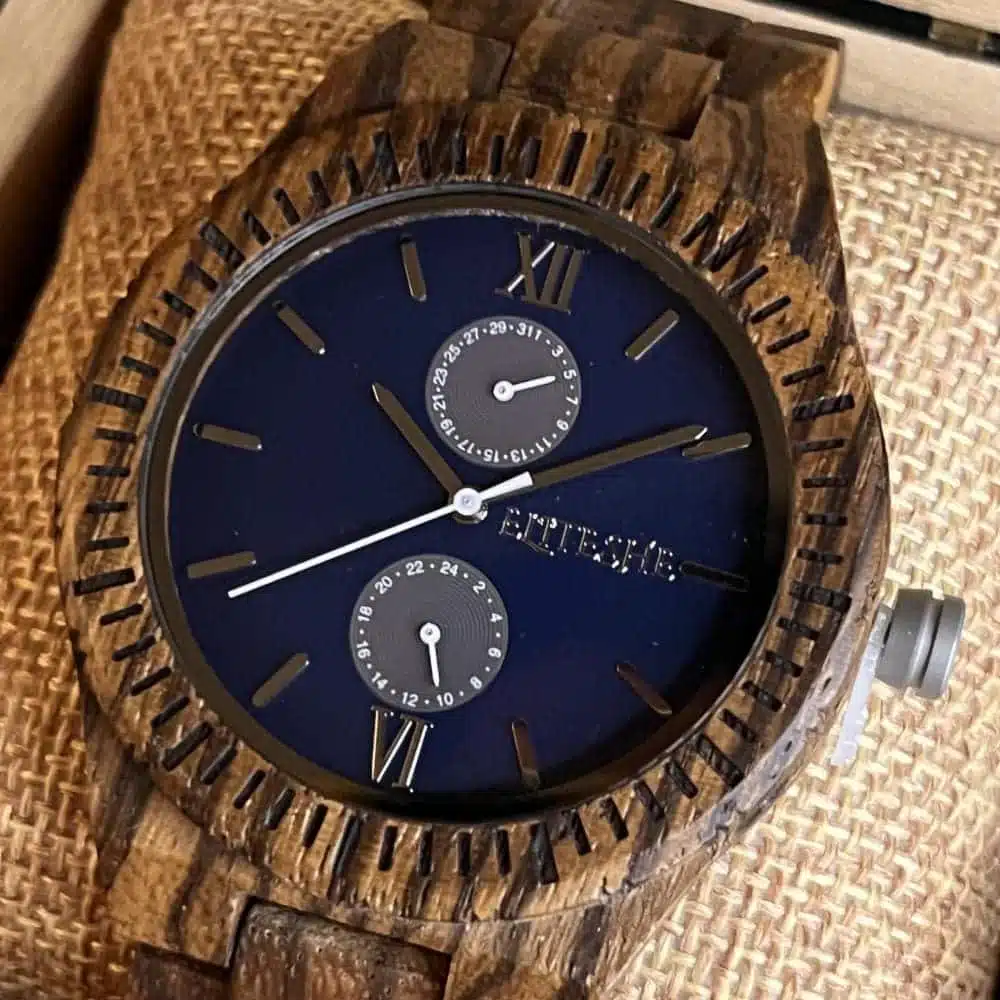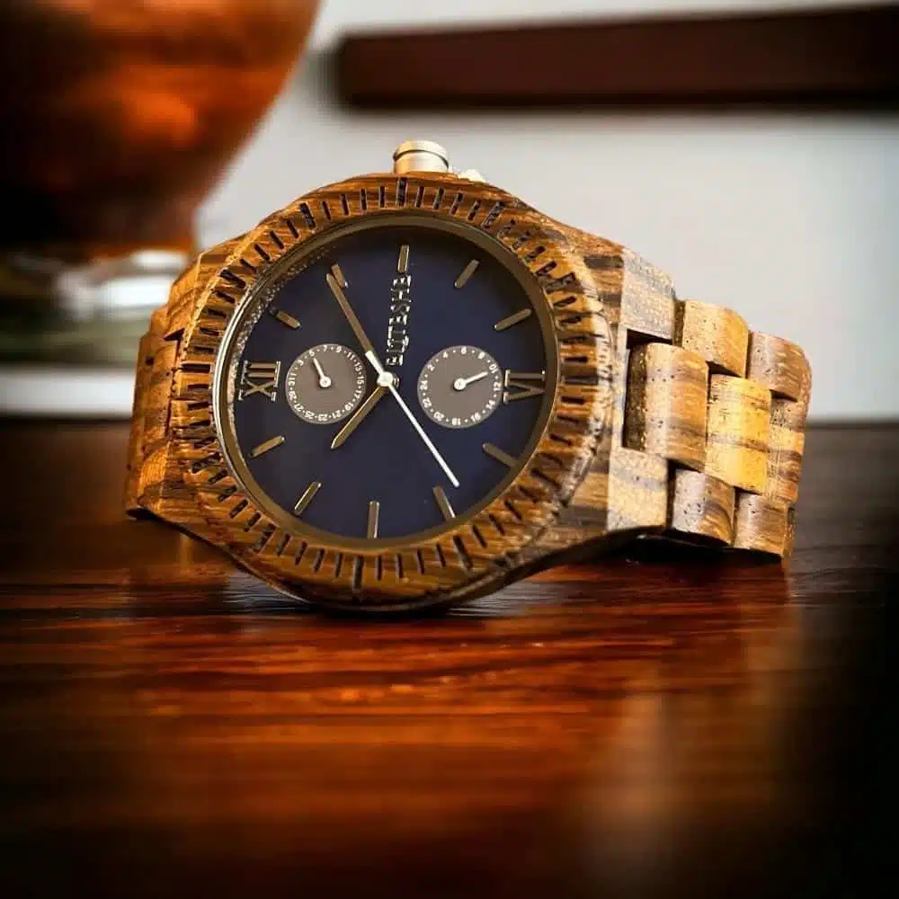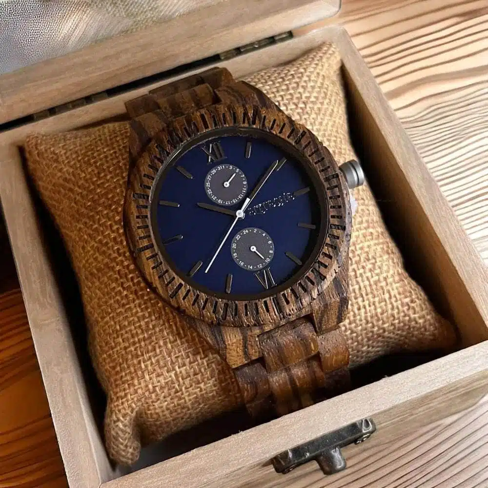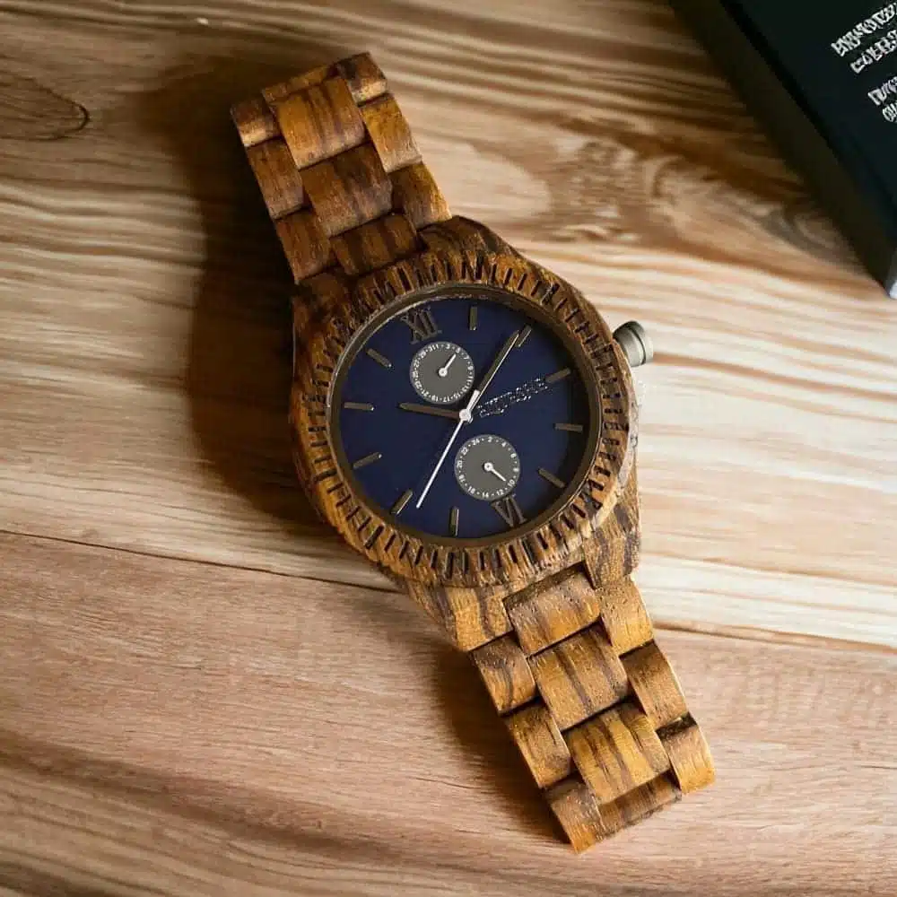 تعمل ساعة بلو وود إيليجينت الخشبية بآلية حركة دقيقة وموثوقة، مما يضمن لك الوقت الصحيح في كل مرة. كما تتميز بمقاومتها للماء والخدش، مما يجعلها مثالية للاستخدام اليومي وتدوم لفترة طويلة.