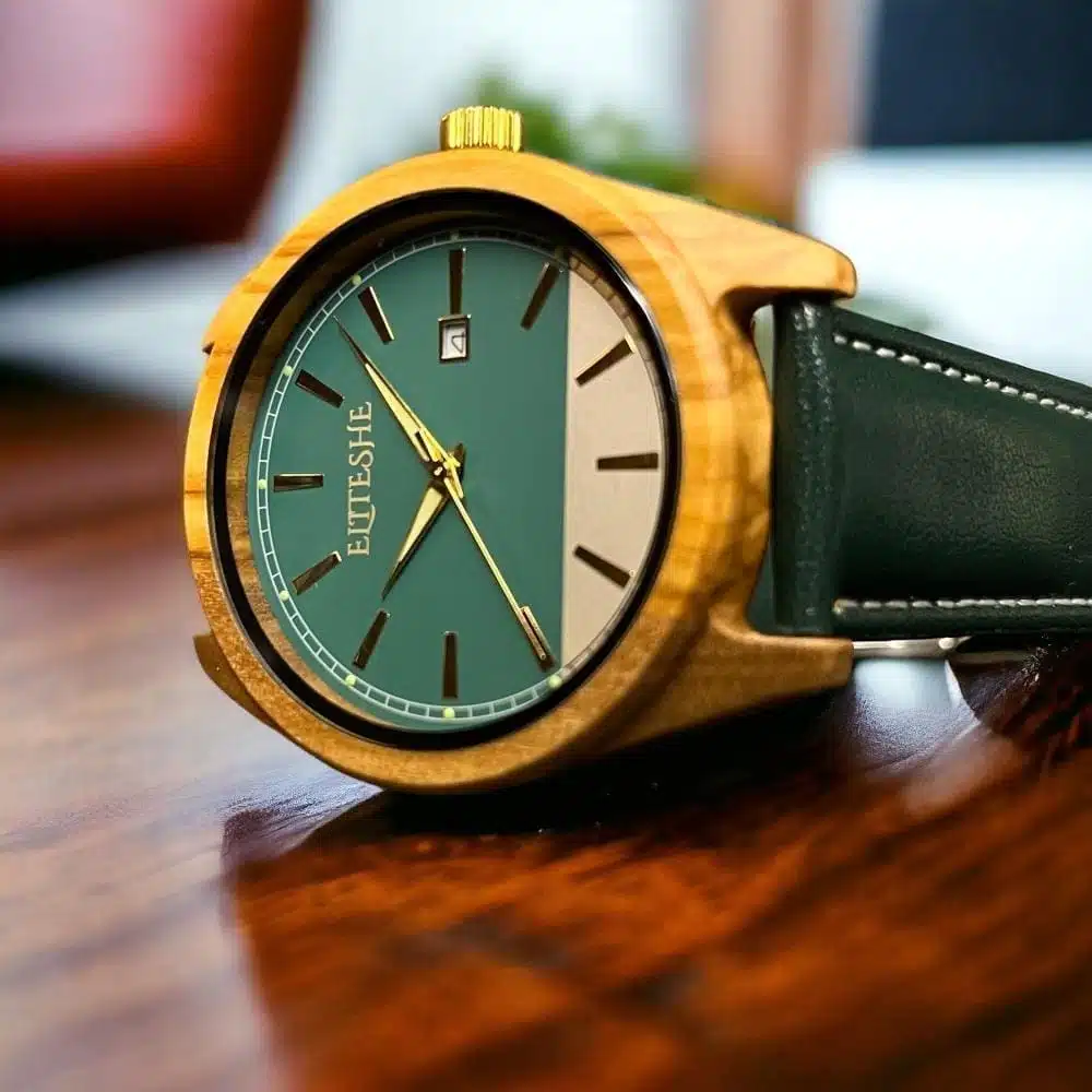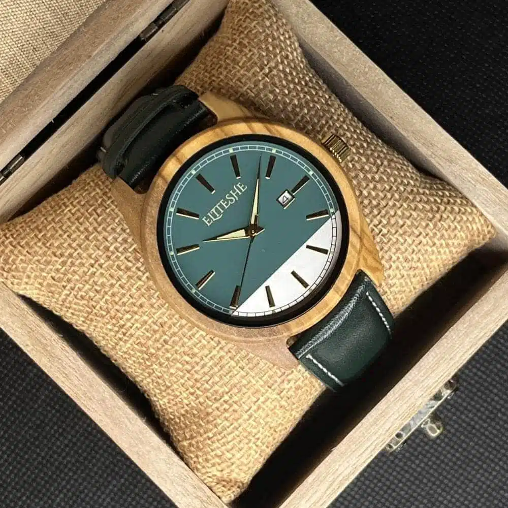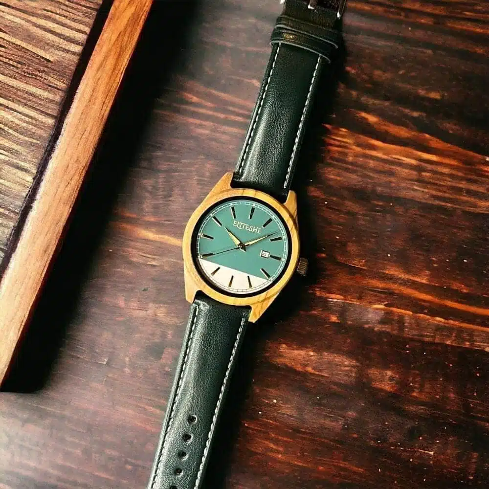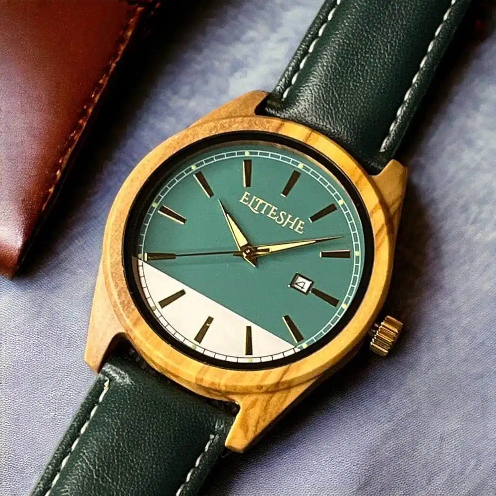ساعة جرين كلاسيك ليذر الخشبية من إيليتشي والتي تتميز انها مقاومة للماء وتتمع بخفه عالية واناقة مميزة وفريدة مما يجعلها الأفضل دوماً للإستخدام اليومي ويعطيها المكانة العملية والتي تصل لتعدد استخداماتها سواء استخدام يومي أو في المناسبات .