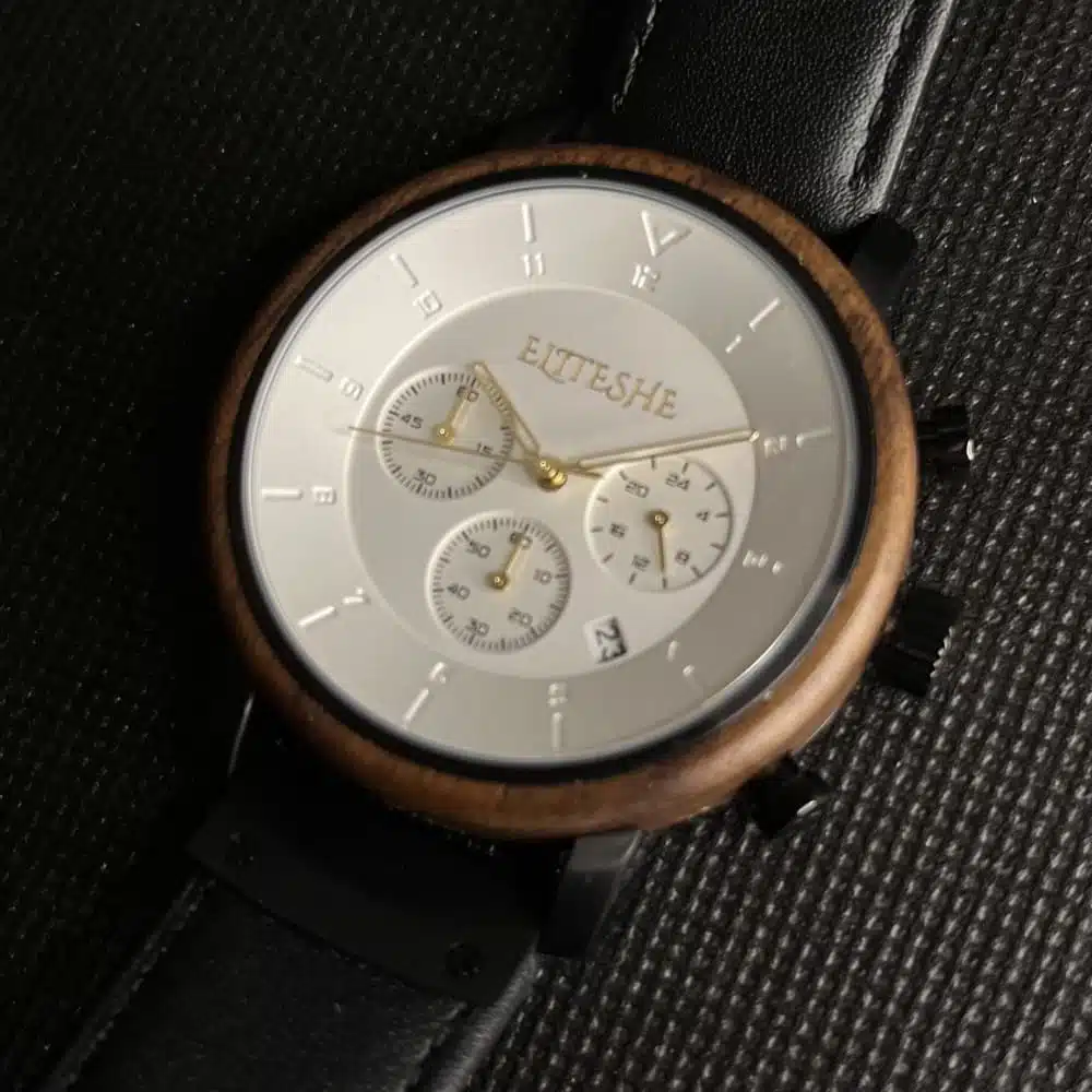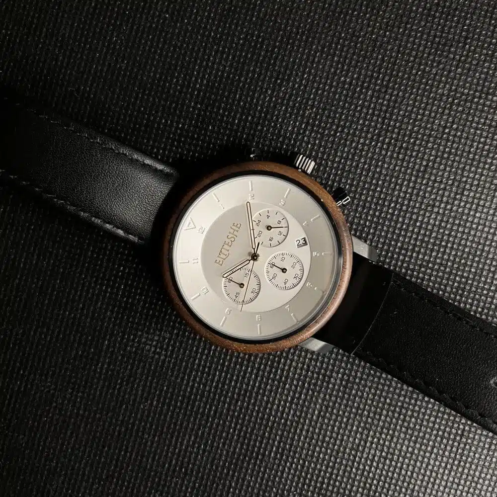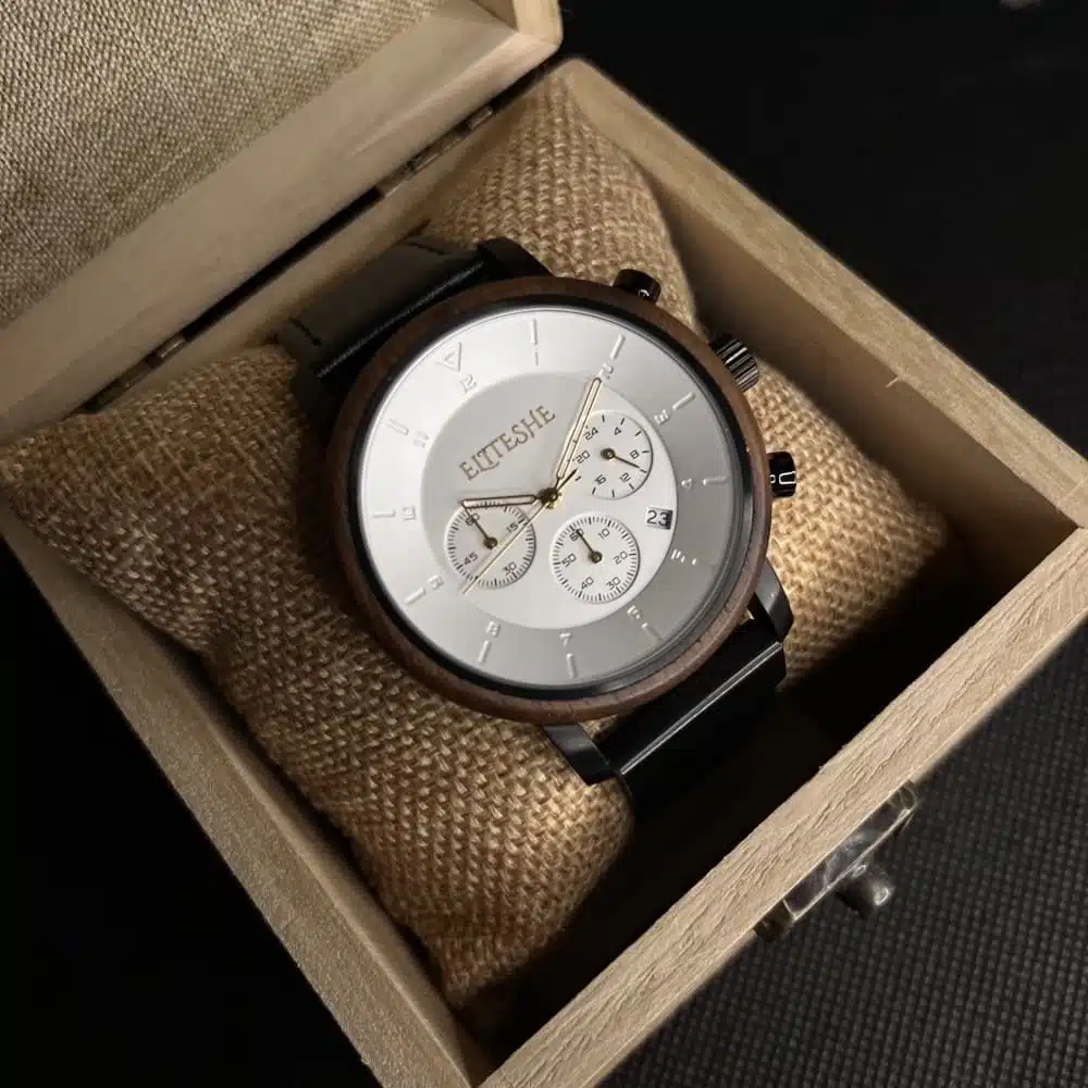 ساعة ليذر لايت ديزارت الخشبية – تصميم استثنائي مصنوع من الاستيل وخشب الجوز الطبيعي