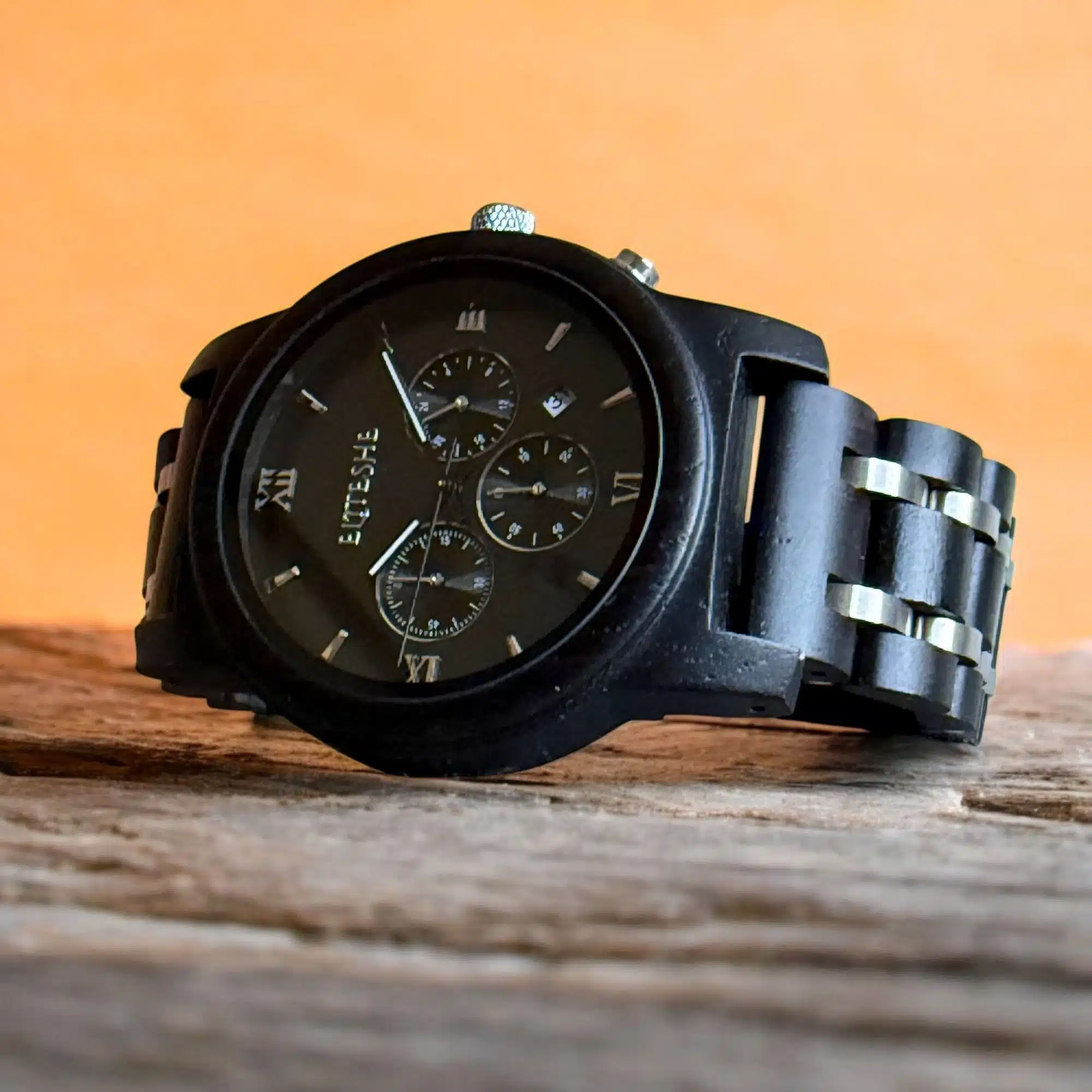 🌑 Black Chrono Wooden Watch – Endless Black Elegance!