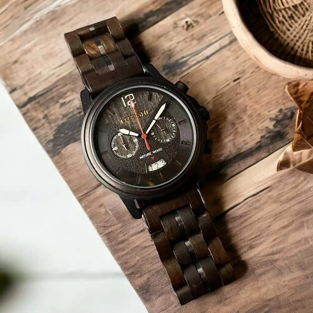 ساعة ايبوني جاينت الخشبية وتجمع مكوناتها بين الفولاذ المقاوم للصدأ وبين أجود أنواع الخشب. وتتميز ساعات “جاينت” بقطرها الذي يبلغ 44 ملم وخاصية الكرونوغراف الأنيق والفاخر . وتتمتع هذه الساعة بميناء بعدة الوان مع حزامها لمصنوع يدويًا من الخشب الطبيعي الفاخر مع مفاصل فولاذية مقاومة للصدأ