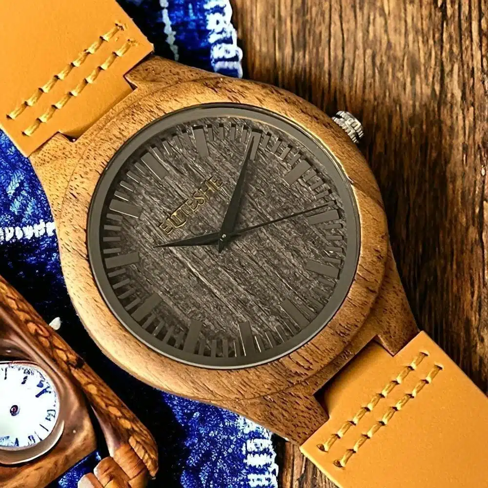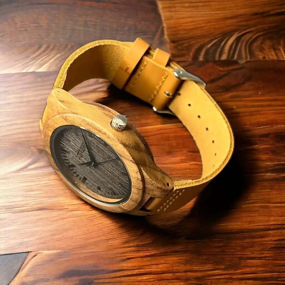 مادة الصنع | خشب بالكامل مع حزام جلد طبيعي