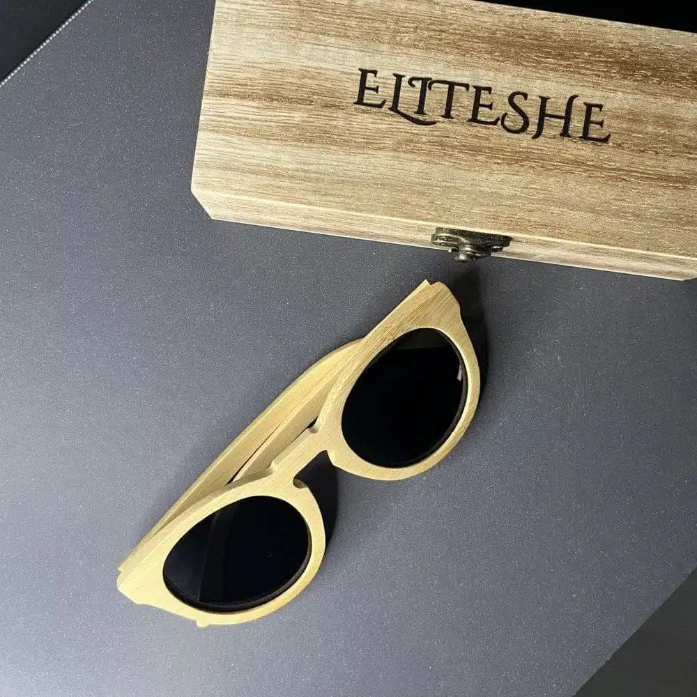 نظارات EliteShe الشمسية المصنوعة يدوياً من خشب الجوز والبامبو والأبانوس الطبيعي المقاوم للماء ، وتتميز بعدسات بلورايزد ذات مستوى الحماية UV400
