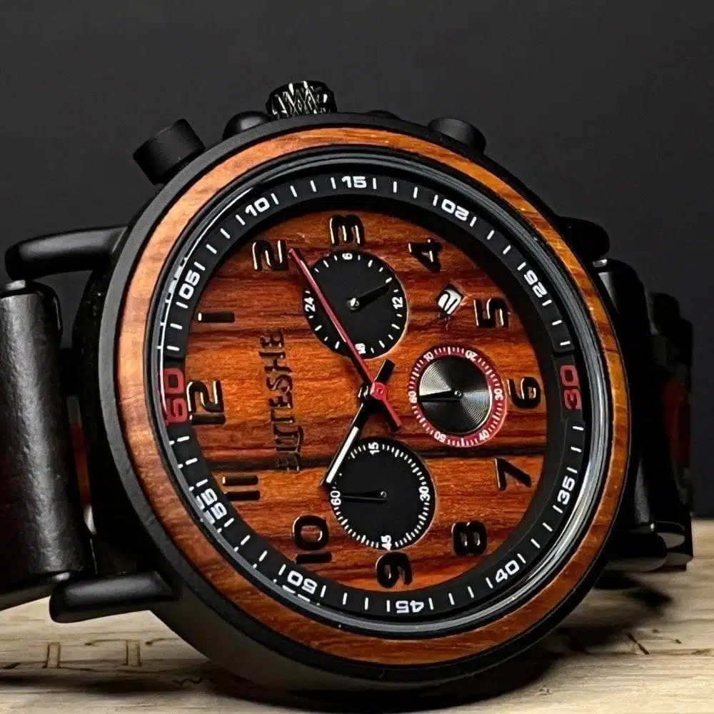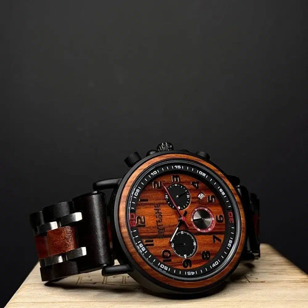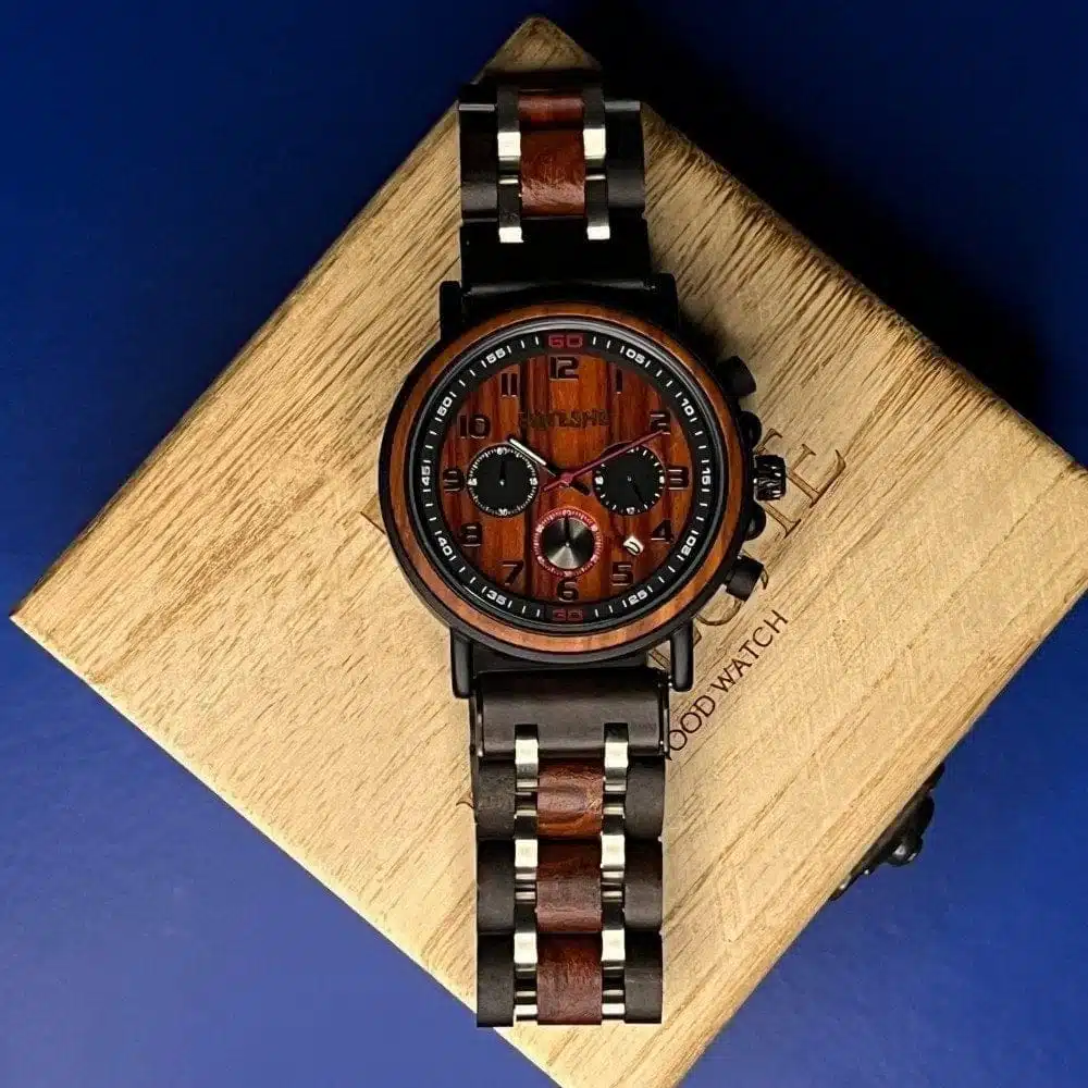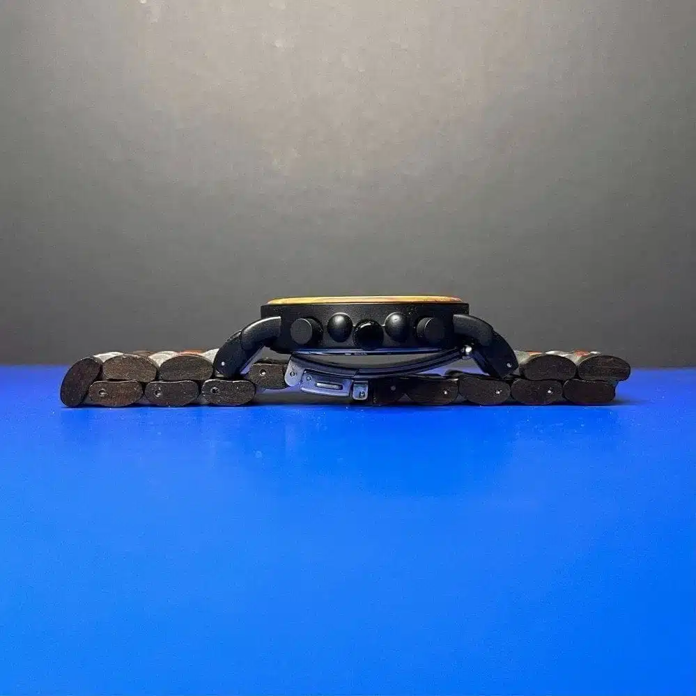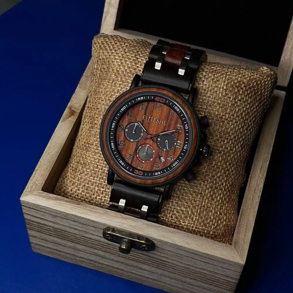 ساعة وود جاينت الخشبية وتجمع مكوناتها بين الفولاذ المقاوم للصدأ وبين أجود أنواع الخشب. وتتميز ساعات “جاينت” بقطرها الذي يبلغ 44 ملم وخاصية الكرونوغراف الأنيق والفاخر . وتتمتع هذه الساعة بميناء بعدة الوان مع حزامها المصنوع يدويًا من الخشب الطبيعي الفاخر مع مفاصل فولاذية مقاومة للصدأ.