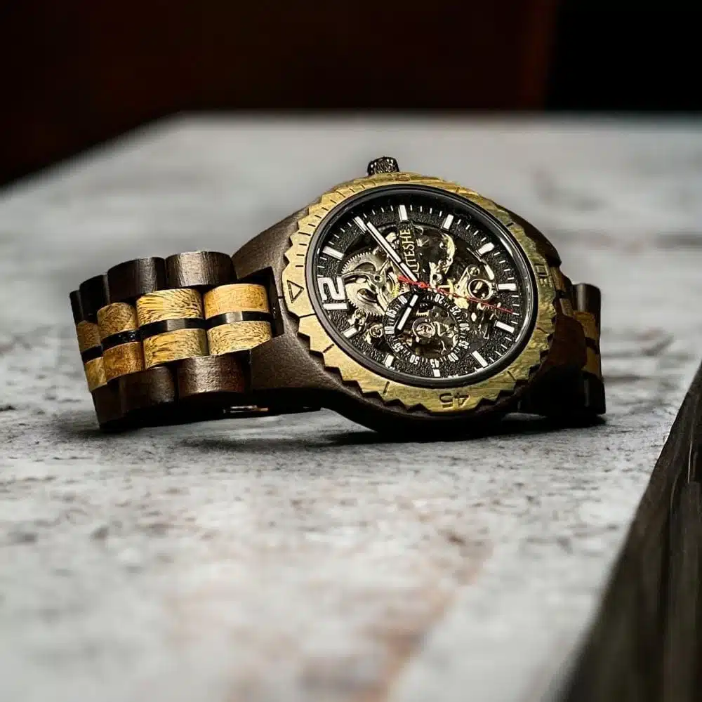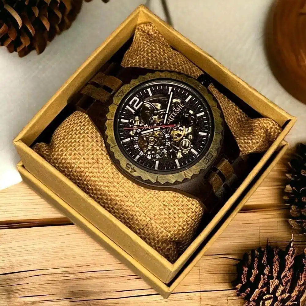 باختصار، تُعتبر ساعة الخشب الأوتوماتيكية بمقاس 45 ملم خيارًا رائعًا لأولئك الذين يقدرون الفن والأناقة الطبيعية، فهي تجمع بين الجمال الخالص والأداء المتفوق بشكل متناغم ومتقن.