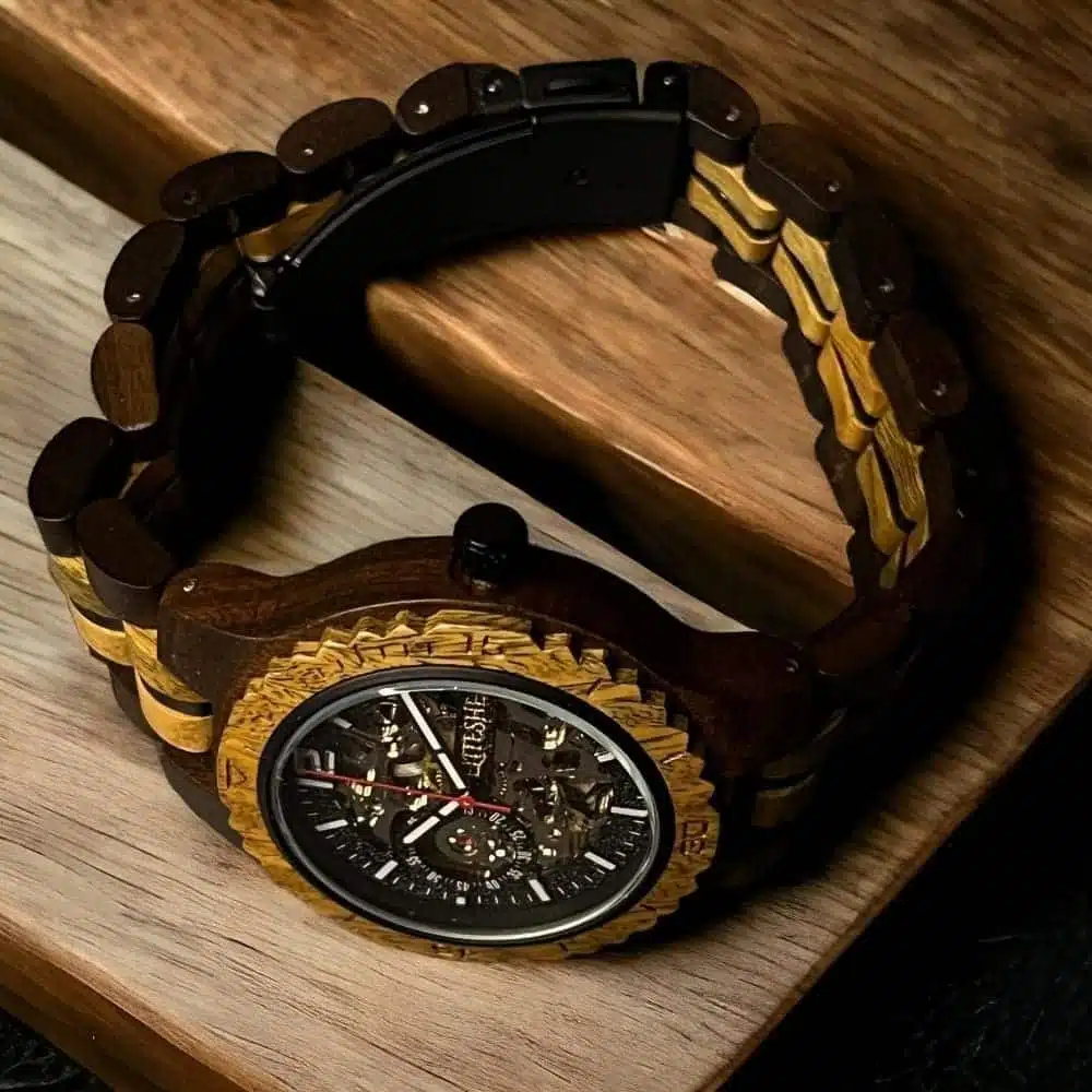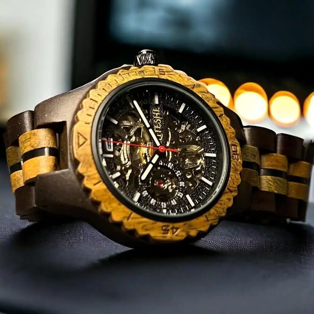 باختصار، تُعتبر ساعة الخشب الأوتوماتيكية بمقاس 45 ملم خيارًا رائعًا لأولئك الذين يقدرون الفن والأناقة الطبيعية، فهي تجمع بين الجمال الخالص والأداء المتفوق بشكل متناغم ومتقن.