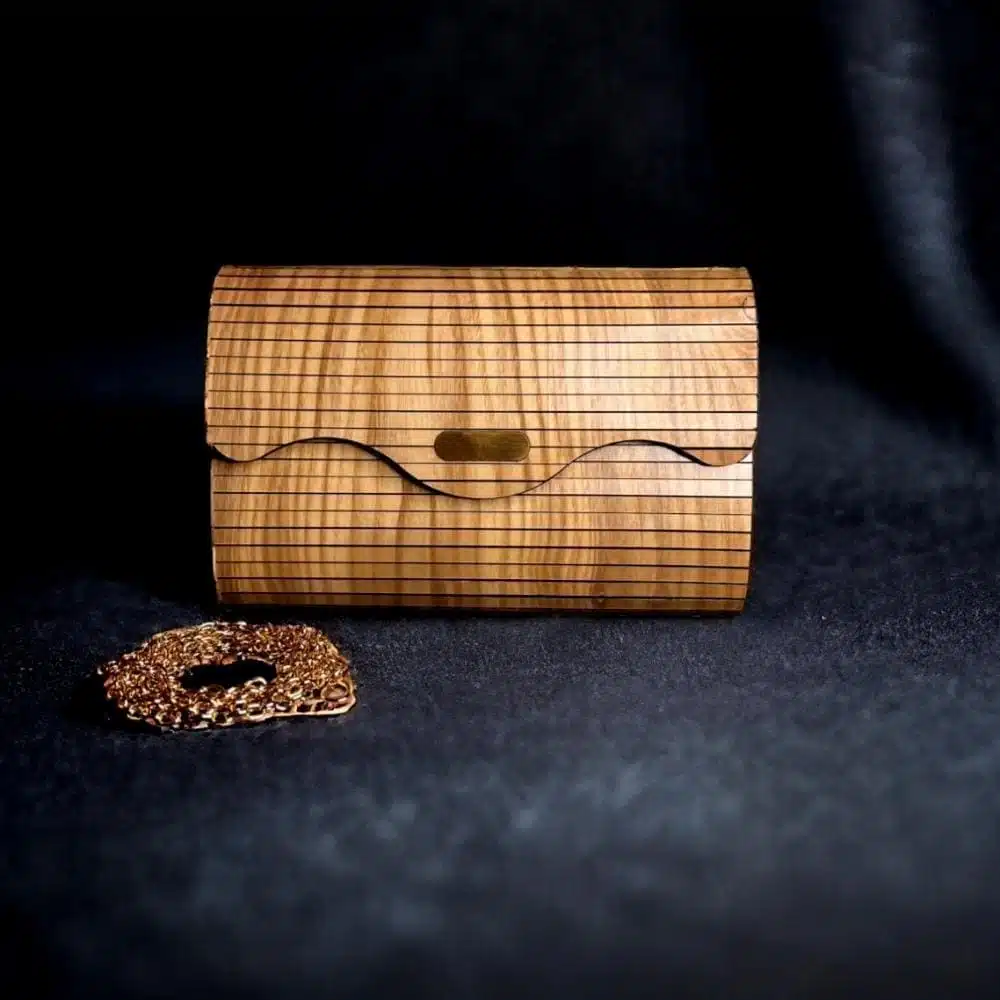 - تصميم أنيق وعصري: تتميز الشنطة الخشبية بتصميم بسيط وجذاب يناسب مختلف الإطلالات، من الكاجوال إلى الرسمية.