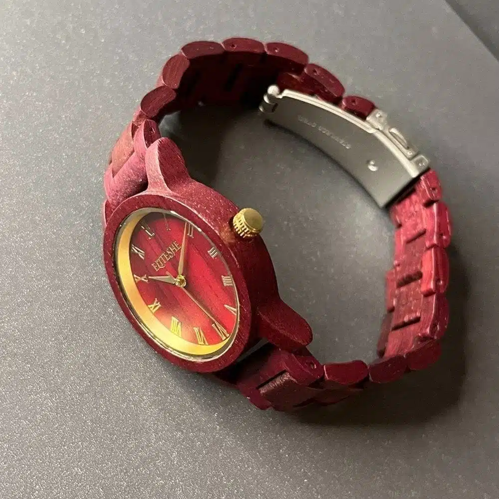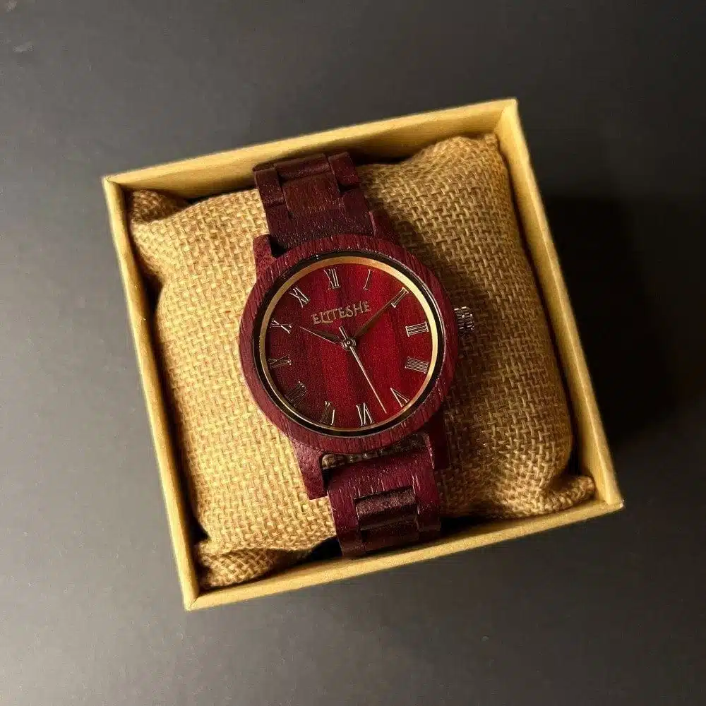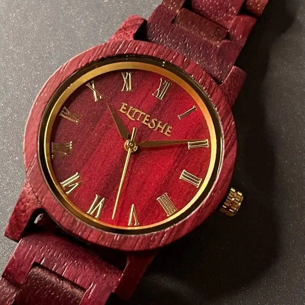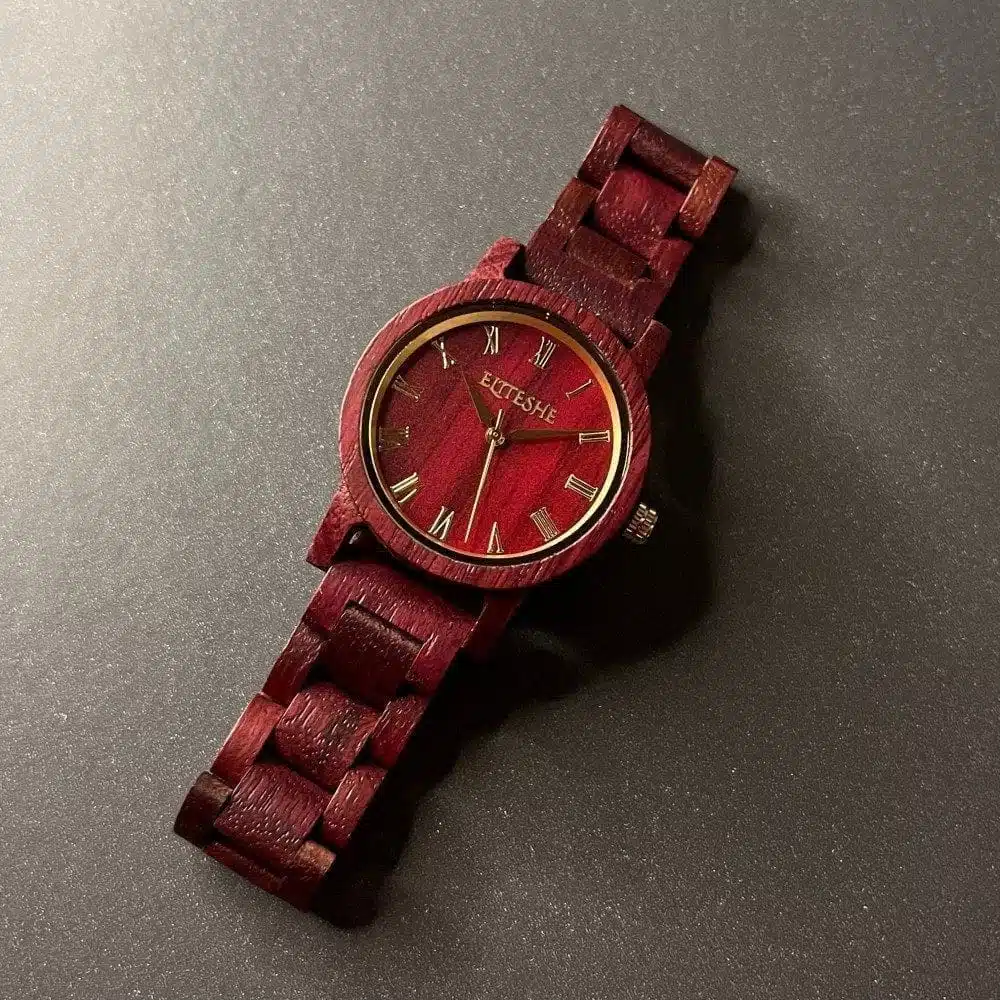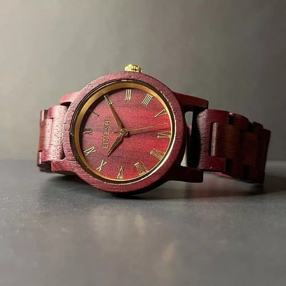 ساعة فايوليت رومان الخشبية تجمع هذه المجموعة النسائية ذات التصميم المميز بين الخشب الطبيعي وبين الميناء الخشبي الفاخر ، وتشتمل هذه الساعة محرك كوراتز ياباني الصنع وبأرقام رومانية . كما تتميز هذه المجموعة بأنها مصنوعة من خشب الورد وخشب الابانوس .