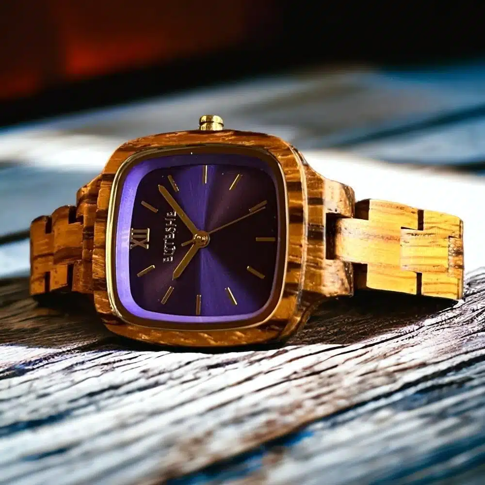 ساعة فيوليت كلاسيك سكوير الخشبية