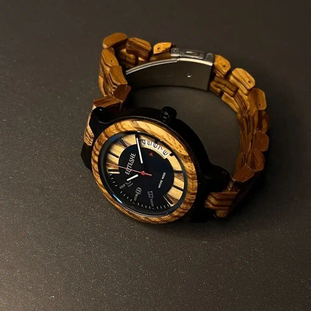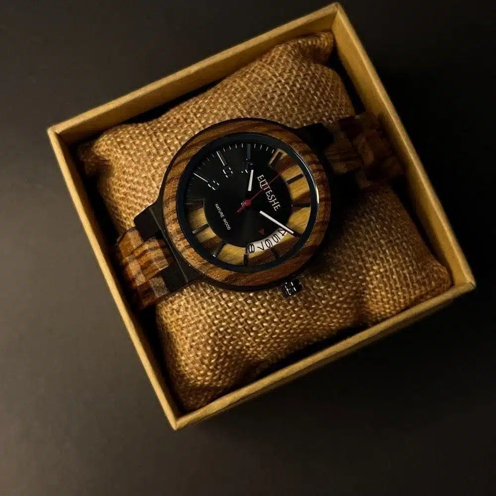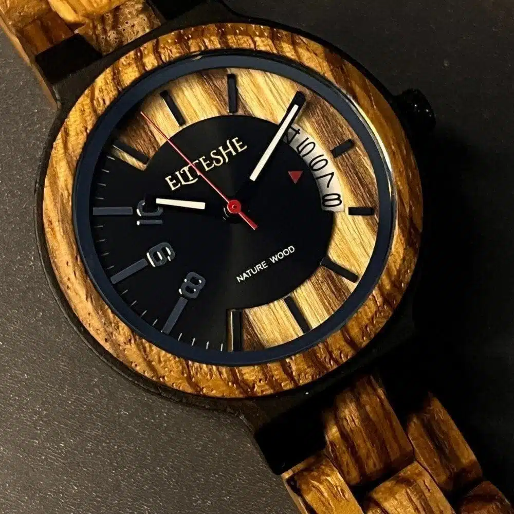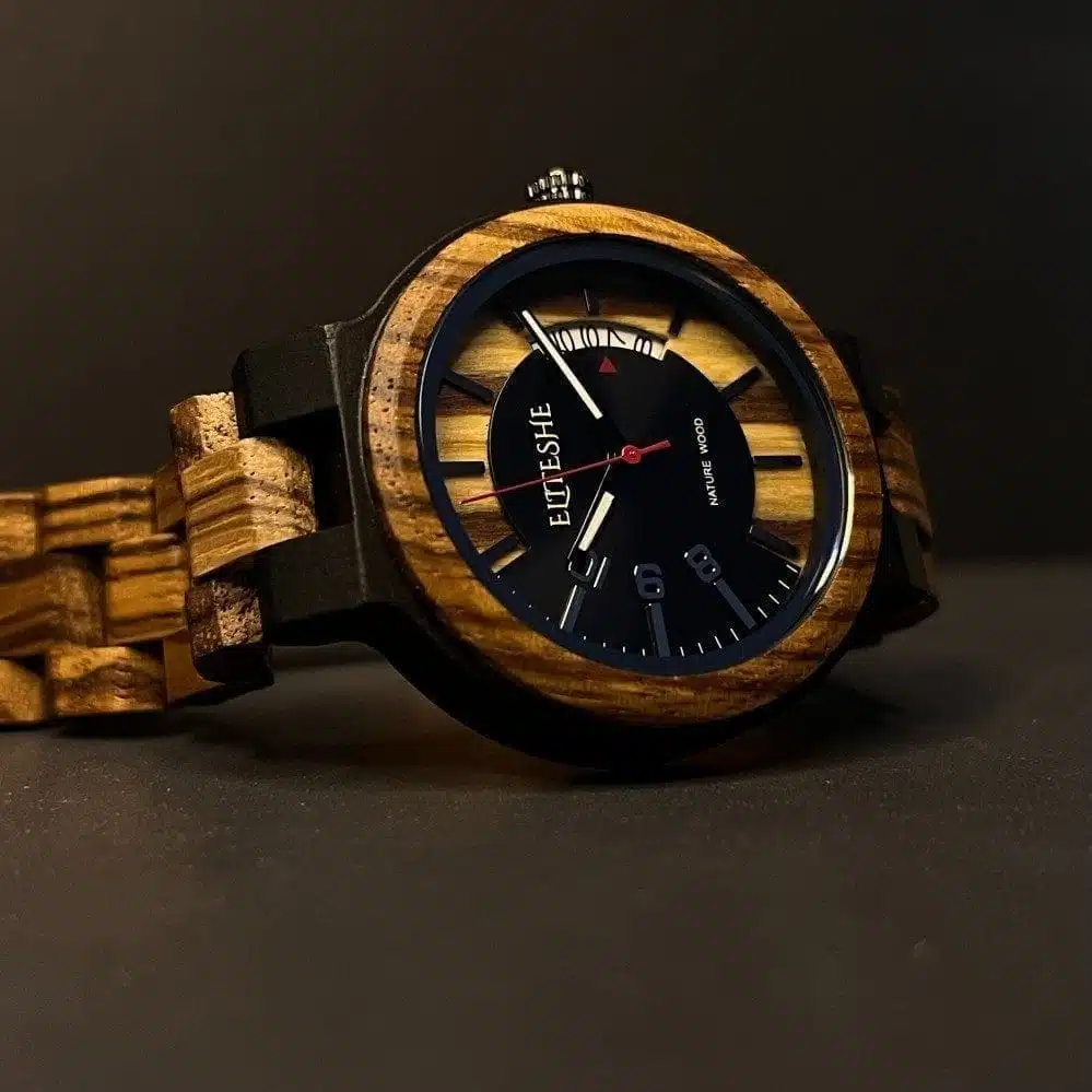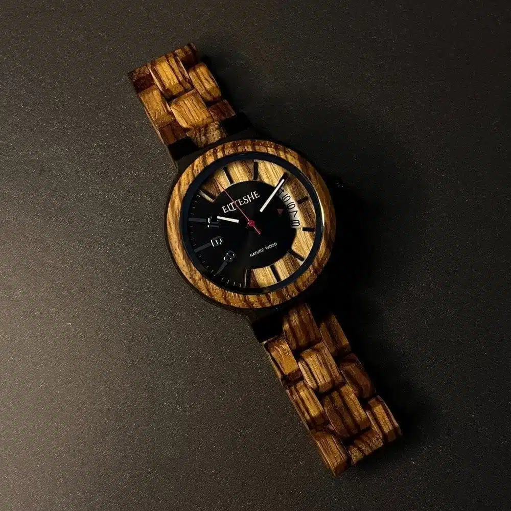 ساعة لايت ستروم الخشبية مصنوعة باليد من مزيج فريد من الخشب الطبيعي المقاوم للماء والذي يتميز بتفاصيل أنيقة تجعل حياتك اليومية في منتهى الاناقة والفخامة ، وتأتي بمحرك كوارتز ياباني الصنع مقاوم للماء ، وهي بسماكة 11 mm ومقاس للقرص 40 mm احصلي عليها اليوم !