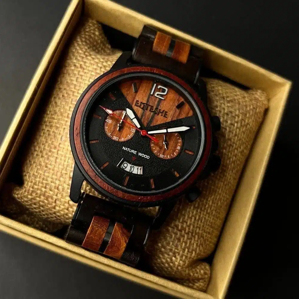 ساعة ناتشور جاينت الخشبية وتجمع مكوناتها بين الفولاذ المقاوم للصدأ وبين أجود أنواع الخشب. وتتميز ساعات “جاينت” بقطرها الذي يبلغ 44 ملم وخاصية الكرونوغراف الأنيق والفاخر . وتتمتع هذه الساعة بميناء بعدة الوان مع حزامها المصنوع يدويًا من الخشب الطبيعي الفاخر مع مفاصل فولاذية مقاومة للصدأ.