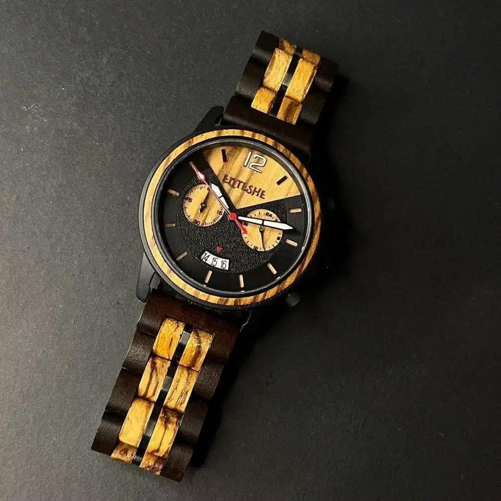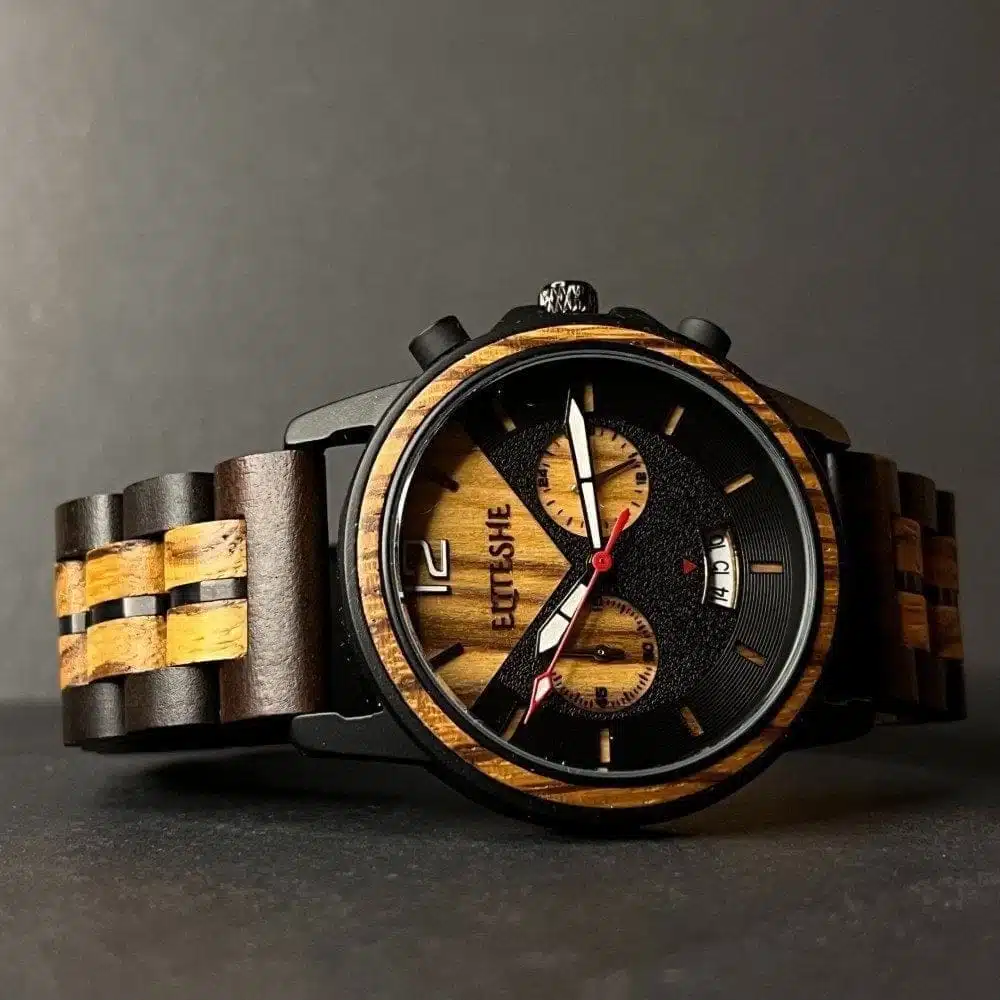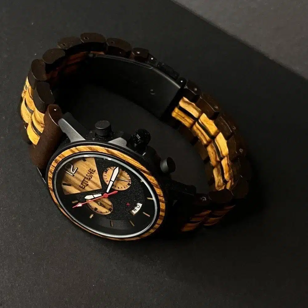 ساعة وود جاينت الخشبية وتجمع مكوناتها بين الفولاذ المقاوم للصدأ وبين أجود أنواع الخشب. وتتميز ساعات “جاينت” بقطرها الذي يبلغ 44 ملم وخاصية الكرونوغراف الأنيق والفاخر . وتتمتع هذه الساعة بميناء بعدة الوان مع حزامها المصنوع يدويًا من الخشب الطبيعي الفاخر مع مفاصل فولاذية مقاومة للصدأ.